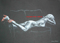 “Red shoes” image on Fantasy Nuggets and the model for the drawing has just found out and went a real WOW over it! Especially as she had no idea about it. She loved the fact that her pose had led to my erotic drawing in the first place (her delight on seeing it at the time was wonderful to see), but the fact that the image has since led on to an erotic story has added an extra dimension for her. And the fact that three women – the model, artist, and writer, have this erotic inter-relationship based partly on what was going through the models head at the time of her posing is really interesting creatively.