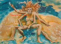 I’ve recently finished a painting that I’m quite pleased with as a concept. Its of a naked big breasted fantasy woman, with multi-limbs in various positions, portraying her as multi-tasking, and able to juggle many things on different levels, simultaneously. It’s brightly painted in yellows and golds and deep prussian blues, using the pour-on technique that I love so much as the background, to give fluidity to the image and more of a fantasy feel to it. I’ve called it “Everywoman” and I think many women will relate to it, as they juggle jobs, relationships, family, and other interests.
