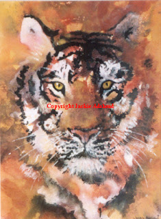 But, as far as winning is concerned – I won the top prize in a local art exhibition a few years ago, and that was a brilliant experience. There were three categories, and an overall top prize, which the judge judged on “If there was a fire, and I had to run out of the building with just one painting, which one would it be?” – and that was the prize I won, with one of my tiger portraits “Burning bright”. Infact the judge liked it so much, he bought it from me afterwards, which doubly made my day – I sang at the top of my voice all the way home!!!!!!! Yay!!!!!