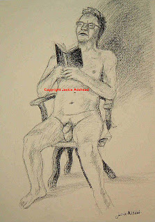 It turns out that he’s been thinking …….about designing his own stationery………well……..more like cards really. In the same style of the drawings I did for him a year or so ago. He wants the outside to be blank, but on page three (so to speak, and proably very apt, in this case!!!) for there to be an image……of himself, drawn by me. The image will feature him doing something, but wearing very little in the process. He wants to write his own caption underneath and the slogans may vary depending on his mood, how cheeky he’s feeling and how much he wants to be outrageous for the recipient of the card.