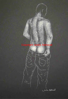 We chatted as I drew him, the background beat of “Bad Company” in the background adding to the artistic flourishes (I DO like Paul Rogers!). And as I drew him, he stated that on the way to my house he’d had a thought and a grin to himself that within an hour of coming to see me he’d be naked in my company. And said that he wished various other women in his past life had asked him to do that too!!!! He made me laff with that comment. But, joking aside, we both know its not sexual, its just……………..well……….art!