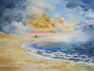 And this is what I painted with that idea in mind. The watercolours add to the clearness of the day and the light sea air, but they also are of enough depth of colour to show the darks of the forboding clouds and the shadows on the sea.