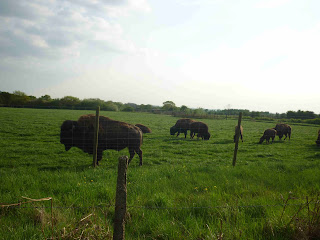 The bison just looked back at me, with the blank stare of being used to being there, and not as perturbed at seeing me, as I was of seeing them. I stood for a while, since I don’t recall seeing them in the flesh before, and then I carried on with a smile, aware that the next field was full of deer, and amazingly the one after that was full of lamas. Where on earth have I walked toooooooooooo?! I know it was a long walk, and a long track, but still, not as far as the Americas, surely!? LOL