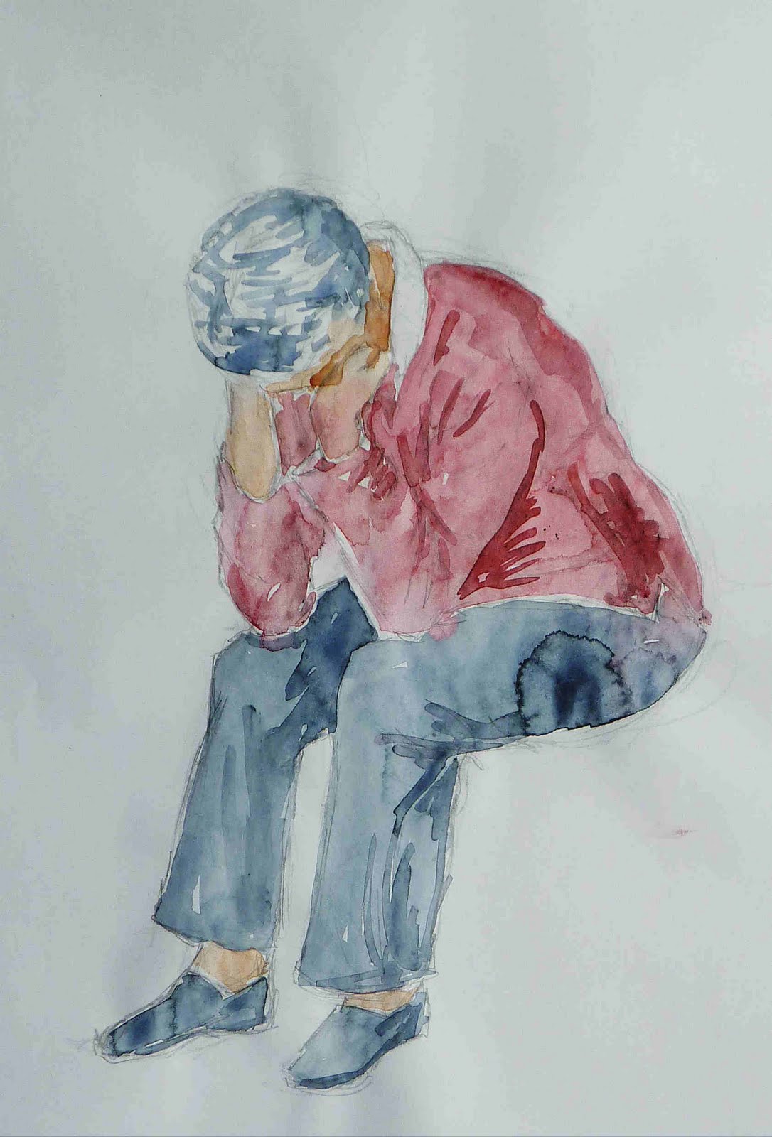 I’d really enjoyed it, particularly when he’d got us doing the three ten-minute poses as three of the group volunteered to sit and pose. Two of them sat in the chair when it was their turn, doing nothing more than a normal pose, but one did a pose with her head in her hands, her face looking down, and I loved it, and really enjoyed the drawing part, almost more than filling it with colour afterwards. I’ve missed it, and missed the way my pencil flew across the paper, making marks, drawing the bare outlines, then filling them out with more and more detail, my eyes following the lines infront of me, and copying them to the paper infront of me. I also liked the fact that with the other artwork he got us doing, after that, it was the expression and body language we were to draw as much as the person depicted. It was all most helpful and interesting to me as an artist and a person who likes people.